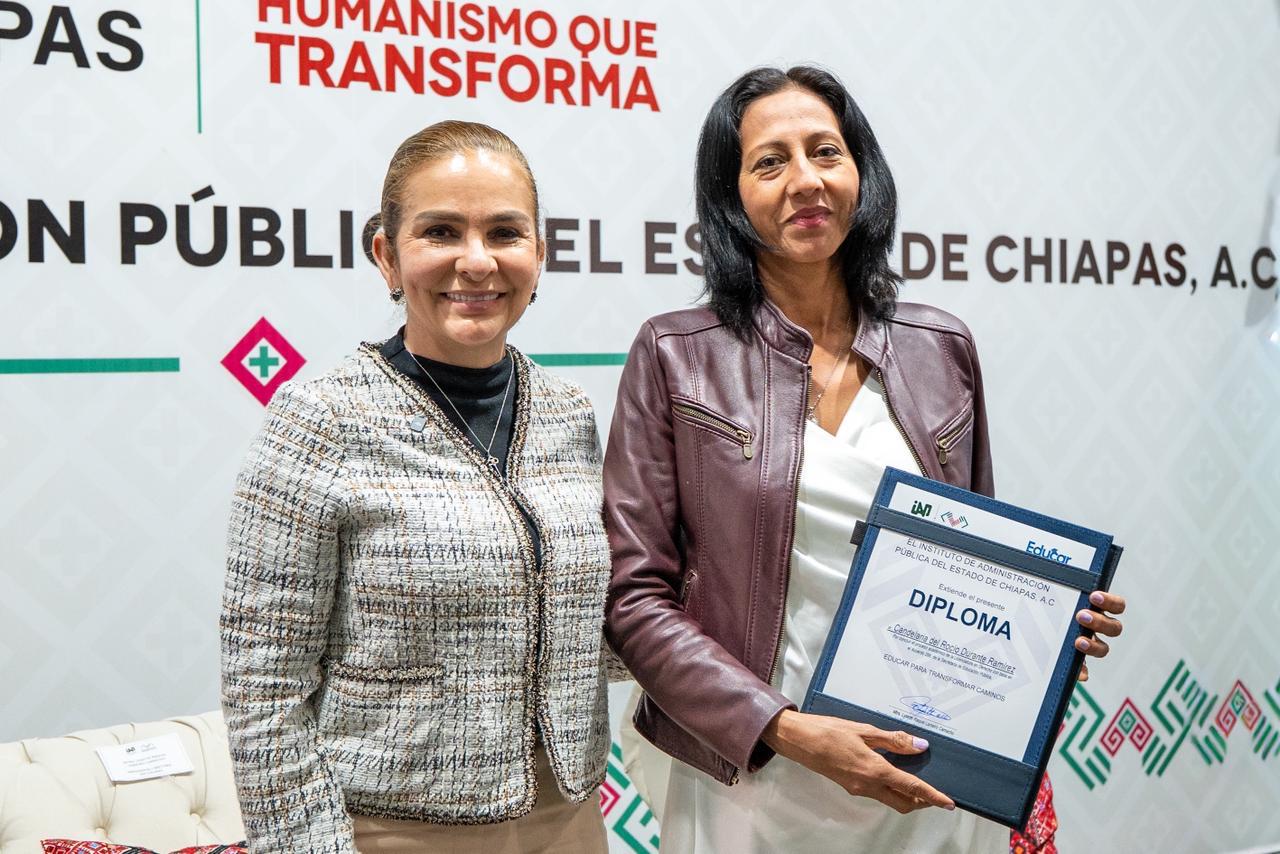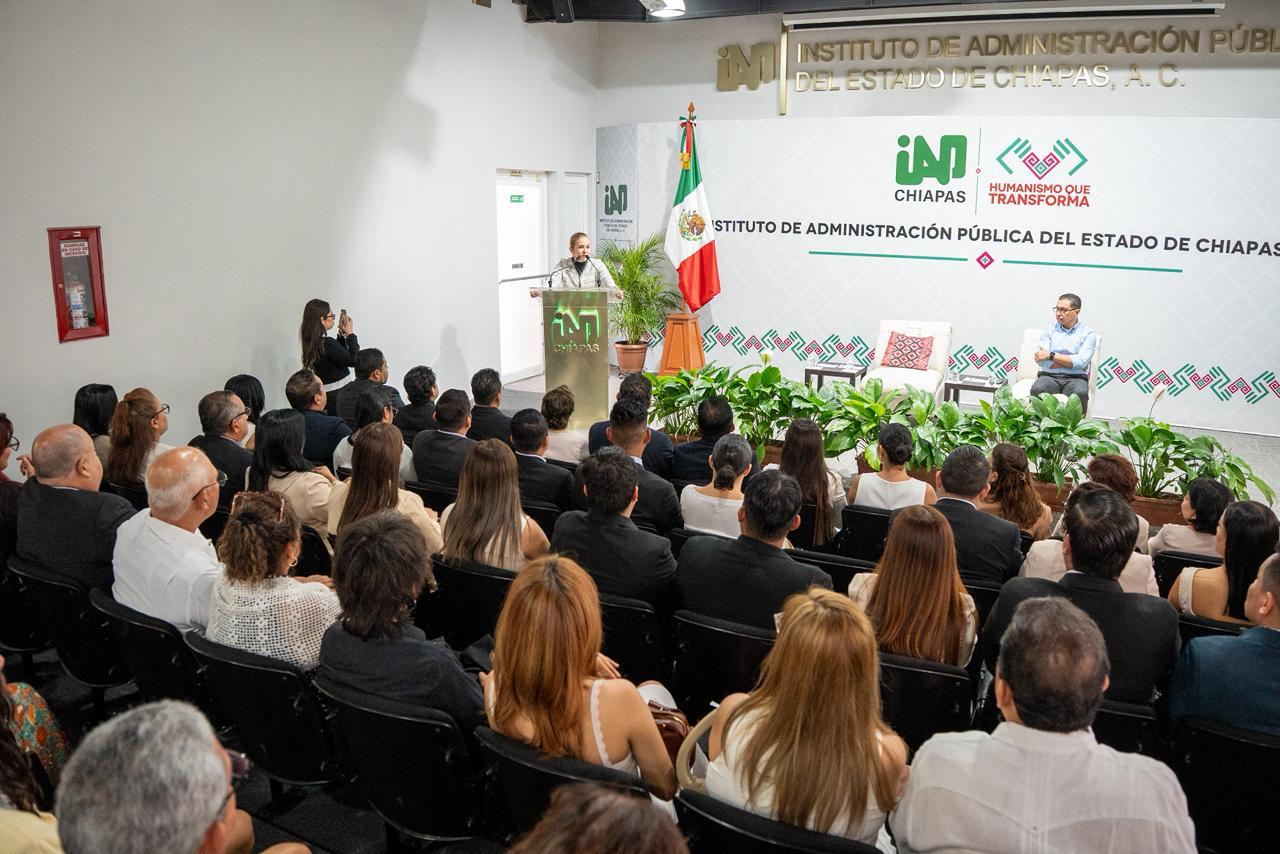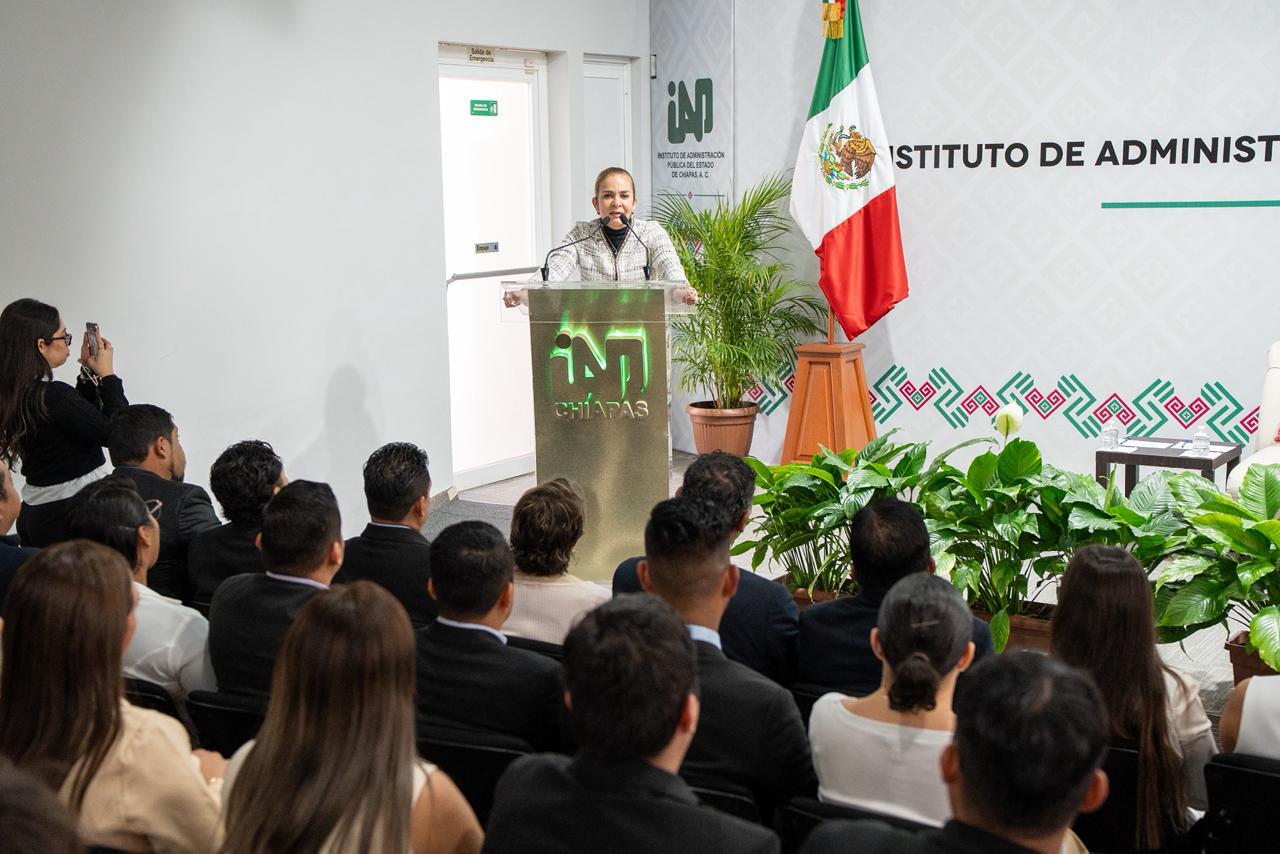 En su intervención, la titular del IAP Chiapas, felicitó y reconoció a los graduados, no solo como profesionales mejor preparados, sino como personas con experiencia, criterio y compromiso. Madurez que hoy es una fortaleza y también una responsabilidad; para transformar las condiciones de vida de los chiapanecos en esta nueva ERA.